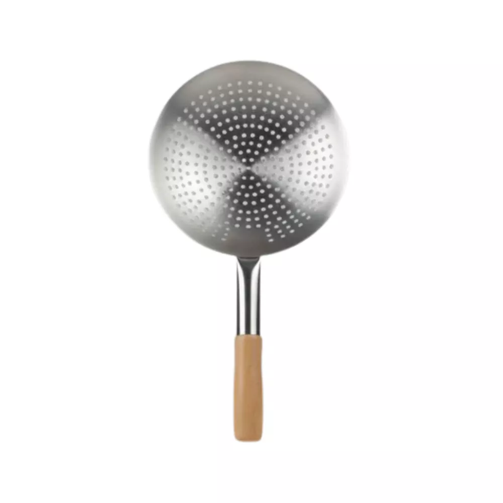 The 26cm Oil Spoon is suitable for medium-sized frying pans and ensures safe oil straining with its strong stainless steel build.