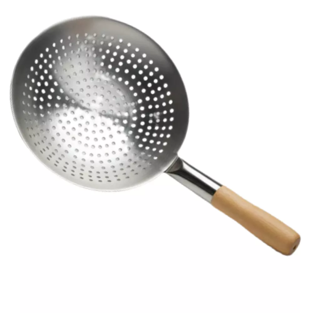 A 26cm short-handle oil spoon for efficient oil straining.